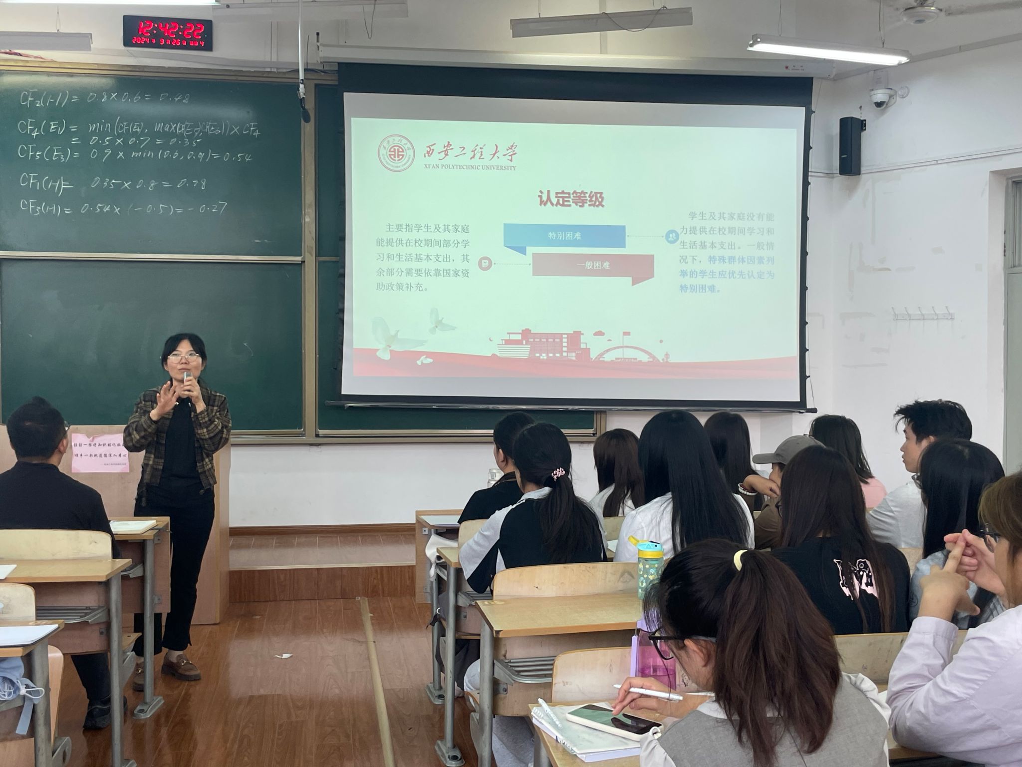 王逢云老师详细介绍了学校围绕“立德树人”根本任务,建立的“奖、贷、助、勤、补、减”六位一体资助体系,强调了学校对家庭经济困难学生的精准帮扶措施,确保每位新生都能顺利入学并完成学业。她鼓励班委们积极传播资助政策,关心关爱同学,成为资助工作的桥梁和纽带。