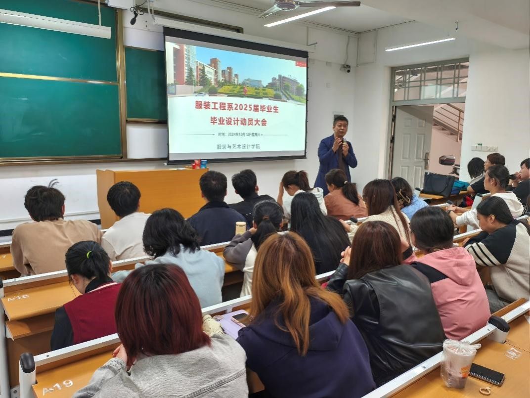 服装工程系在1-101教室召开了2025届毕业生毕业设计动员大会。服装工程系部分教师及2021级服装设计与工程专业全体同学参加了此次会议。