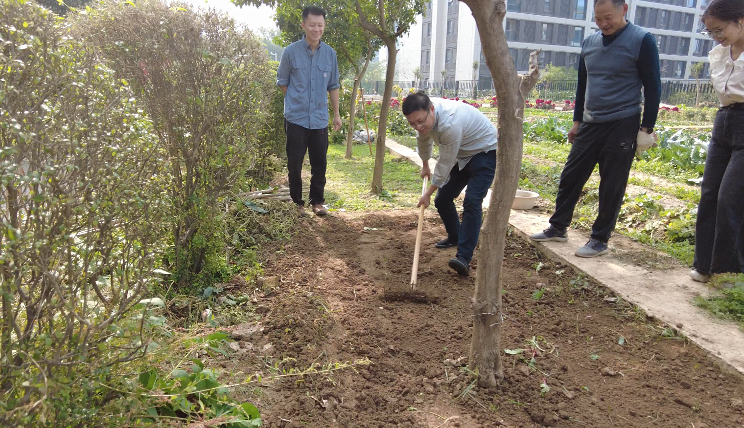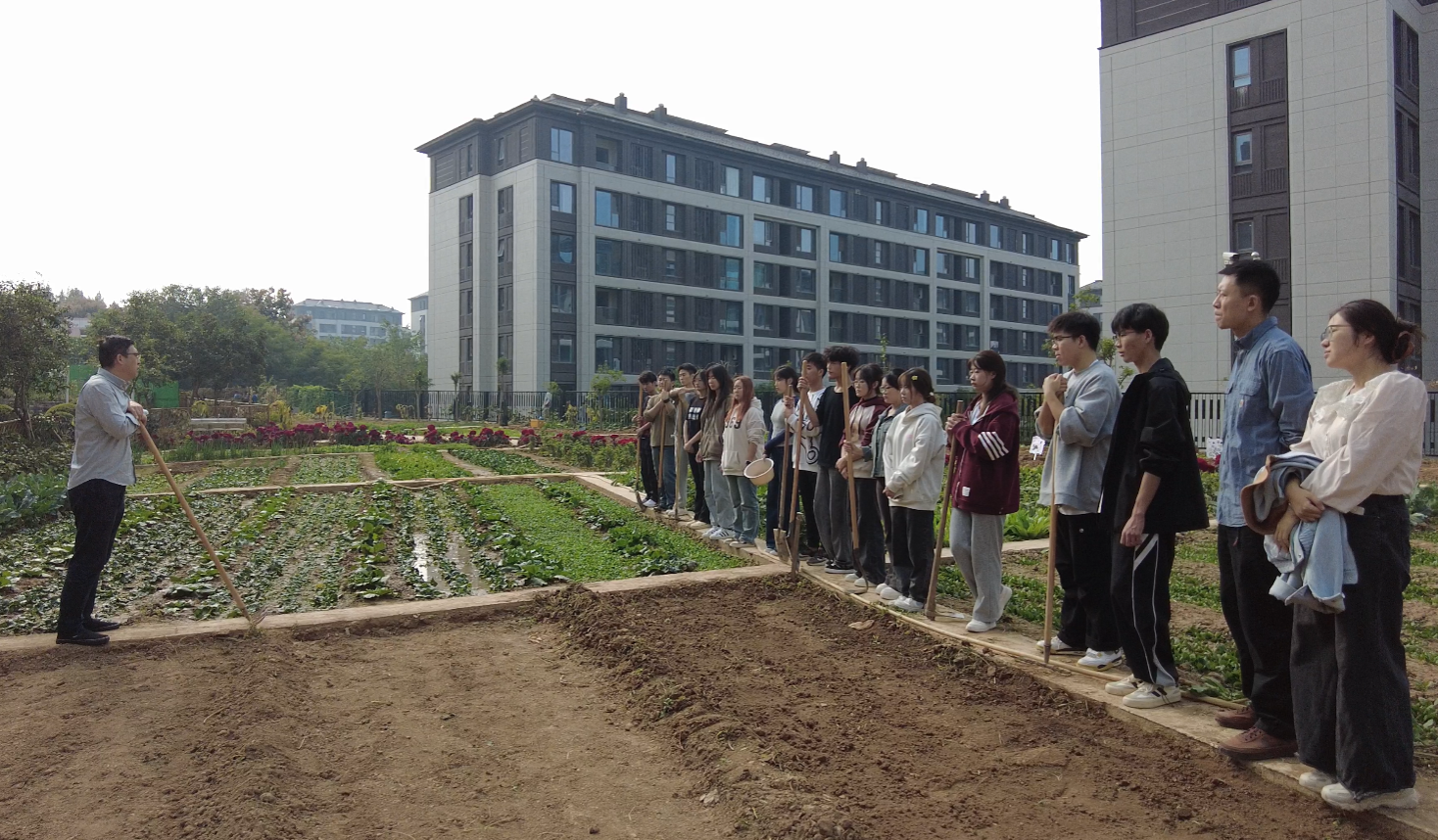 党委书记苏博的带领下,在2024级新生辅导员邵巍,王盼和姜萌的组织下齐聚耕读小园,并播种下了一片豌豆,为这片土地增添了新的绿意。