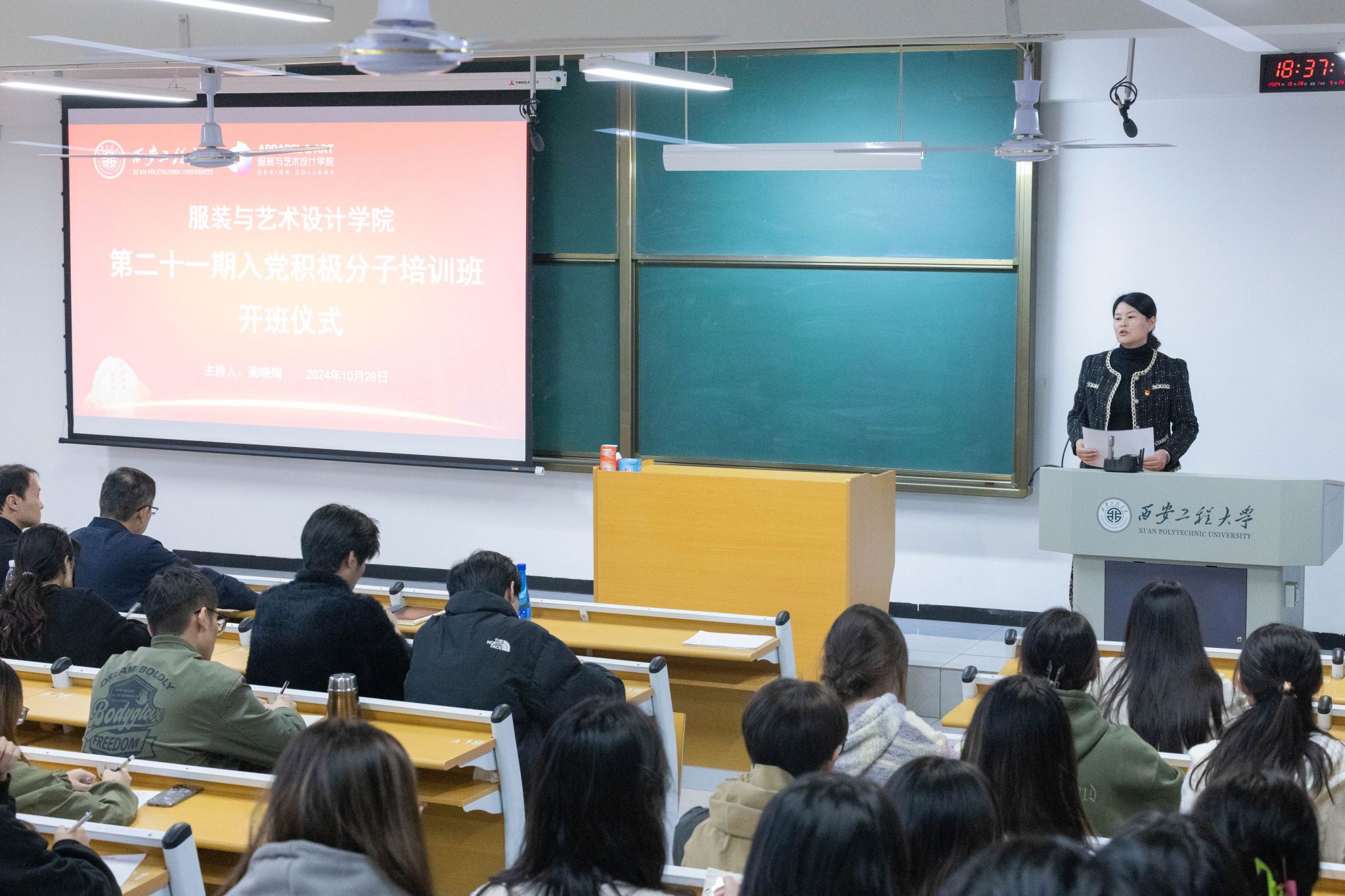 在金花校区1号楼203教室举行了第21期入党积极分子培训班开班仪式暨党课第一讲。学院党委书记苏博、副书记马磊、副处级组织员吴艳杰,各学生支部党员代表及学院第21期入党积极分子90余人参加了本次会议,会议由学工办主任蔺晓珣主持。