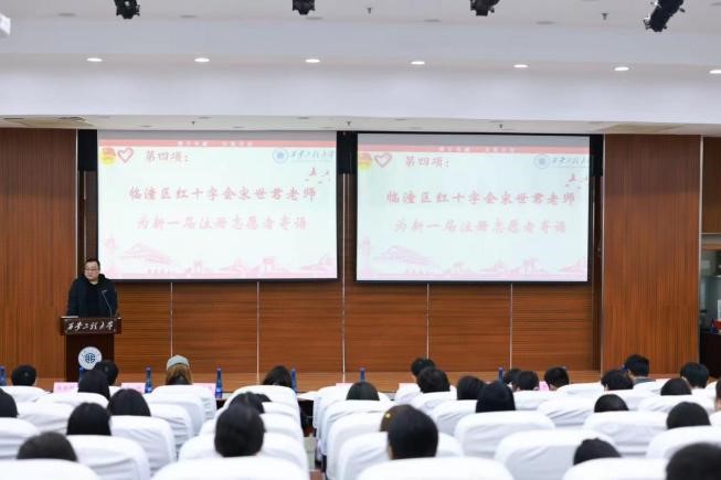 临潼区红十字会宋世君对现场同学们送上了寄语,鼓励志愿者们真诚地参与到社会志愿活动当中,用实际行动践行红十字精神,传递爱心与温暖。他表示:“希望新时代的志愿者们眼里有星辰,心中有大海。”呼吁更多的同学加入志愿者的行列,希望大家在志愿服务中不断成长,培养社会责任感,为社会和谐贡献自己的力量。