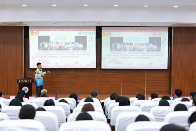 青年志愿者协会(以下简称“青协”)在临潼校区图书馆二楼报告厅,举办了志愿者入退会暨青协学年工作总结大会。此次大会旨在分享、互动和交流志愿服务的经验,加强志愿者之间的联系和团队的凝聚力,为后续志愿服务工作奠定坚实基础。参与本次会议的有西安市临潼区红十字会宋世君、24级新生辅导员姜萌,校青协及各学院代表韦景萍同学等30人,24级各班团支书及学院注册志愿者120余人。
