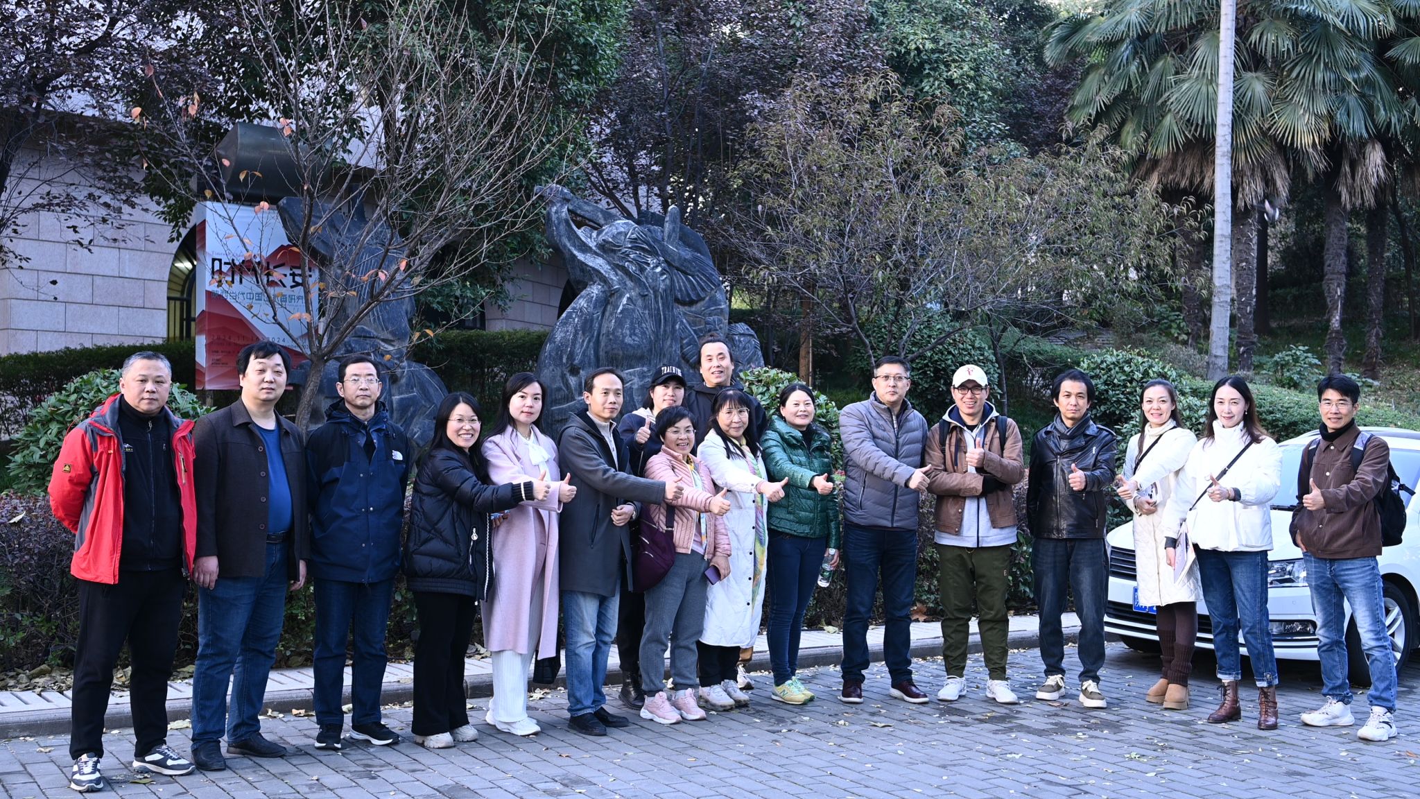 下午三点,党员队伍集合于陕西省美术博物馆前,参观“时代长安 —— 陕西当代中国山水画研究展”主题展览。白林坡、王峰以本次展览理论研究员视角,带领大家感知到陕西山水画源远流长的历史文脉,欣赏改革开放以后陕西老一辈艺术家在山水画领域的累累硕果,领悟长安画派大师们开创山水画的新风新貌,品味广大中青年山水画家在新时代孜孜不倦的创新成果。最后大家一同观赏了陕西省美术博物馆收藏的学院环境艺术系教师刘国英的获奖雕塑作品《刘关张》。