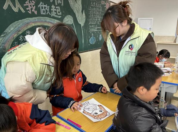 师生们继续赴康复路小学开展第六次美育润心特色课程。本次课程的主题为“色彩的情感”,通过对色相、色谱的了解分析,带领同学们探究不同色彩所传达给人的丰富情感,让同学们学会怎样使用色彩表达情感,从而深刻体会到色彩的魅力。