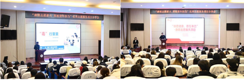 团委书记马薏雯出席了本次分享会。“毒行睘睘”、“扶危拯急,救在身边”两个项目的负责人以禁毒、急救所需的知识宣传、讲座、实践等活动形式为切入点,以提高大学生自救自护意识为核心主旨,依次对项目进行了精彩的展示分享,获得了现场师生的热烈掌声。