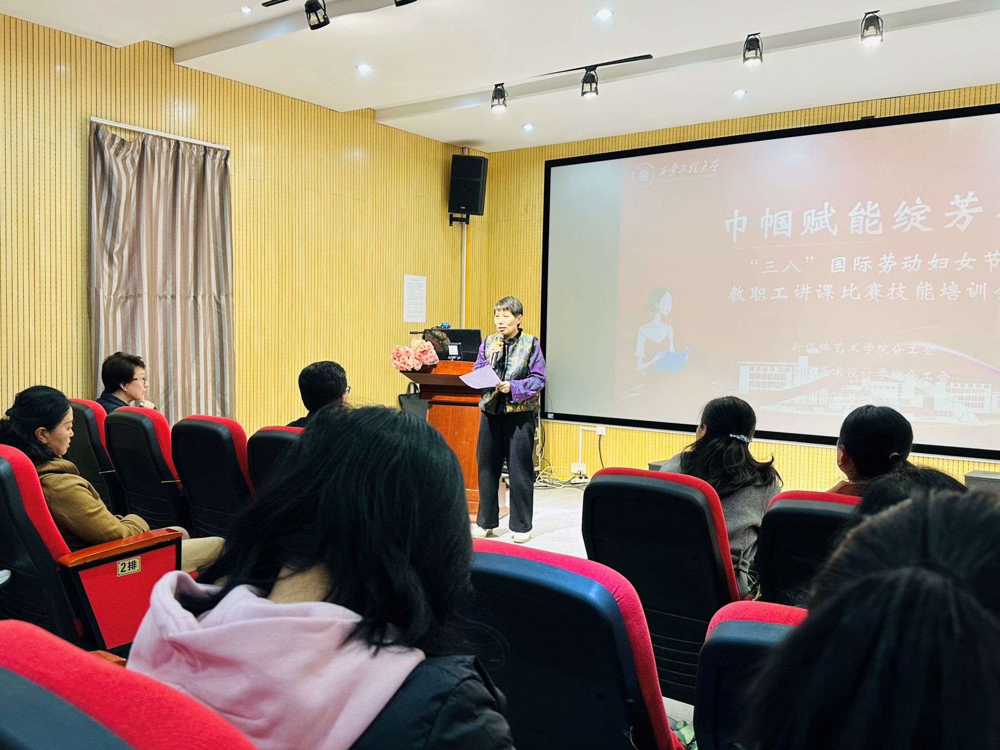 工会和新媒体艺术学院工会联合举办了一场以“巾帼赋能绽芳华”为主题,以教师培训及女性励志电影观影为主要内容的庆祝活动,吸引了两学院众多女教师积极参与。