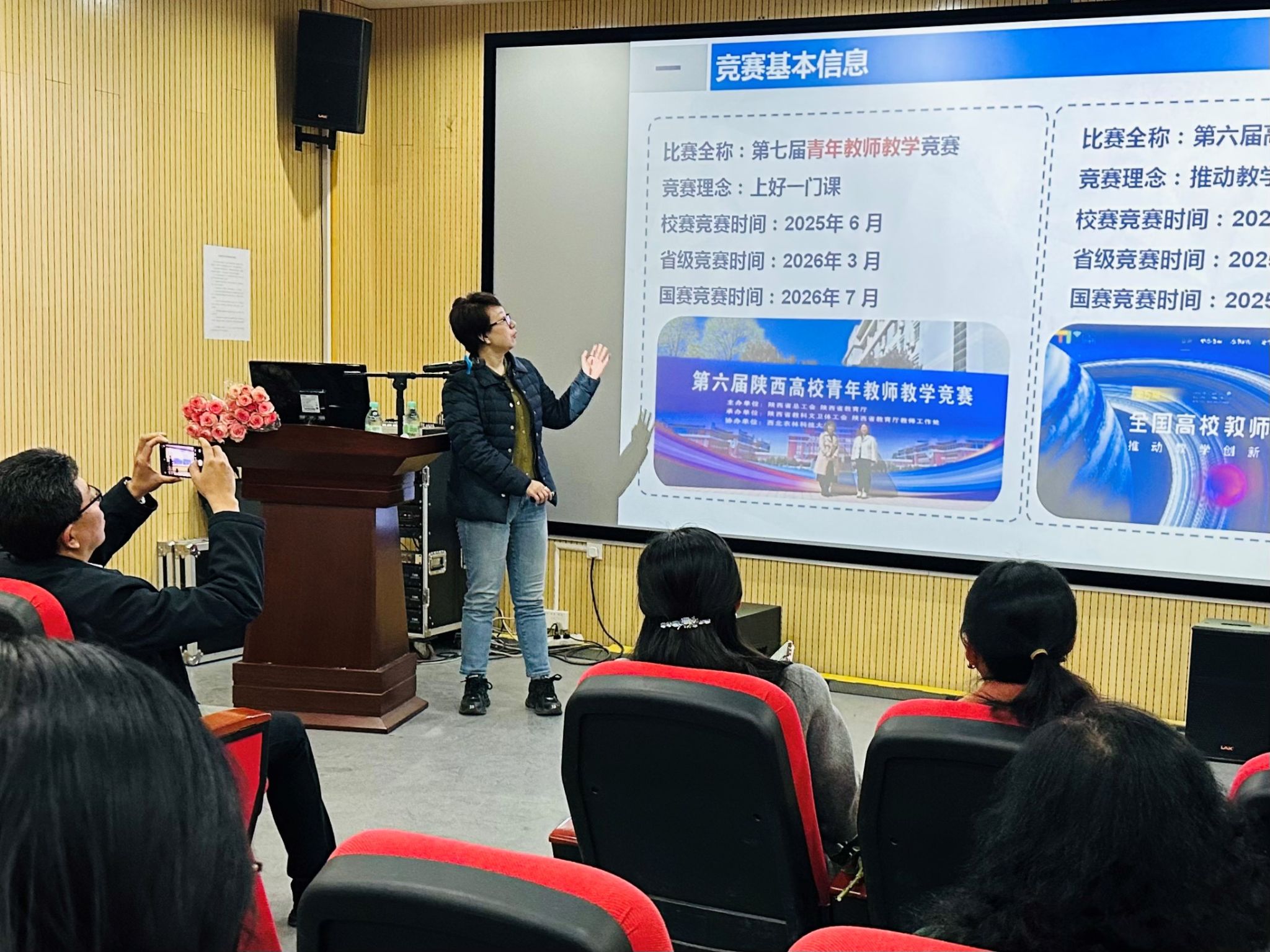 本次活动由新媒体艺术学院丛红艳副院长主持,邀请到学校教务处副处长任燕老师开展教师培训,任燕老师围绕青年教师教学竞赛、高校教师教学创新大赛,从赛事基本情况、赛事要求、评分细则等方面展开,为大家进行了全面且深入的介绍,并对教学成果申报、创新课程设计、教师个人成长展开分享。任燕老师通过深入浅出的讲解和生动的案例分析,引发了教师们的热烈讨论与积极互动。