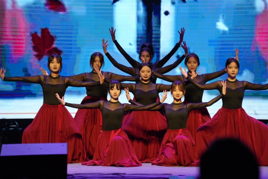 经初赛、复赛遴选,共有12个班级晋级合唱决赛。各班精心演绎了《稻香》《青春舞曲》《夜空中最亮的星》等脍炙人口的歌曲,部分班级创新融入吉他、贝斯、架子鼓等现场伴奏及创意道具,展现多元风采。活动同时展演了“霓裳同心舞·风华夏章”民族融合舞蹈比赛的优秀作品。《花木兰》英姿飒爽,《美人关》柔情与刚毅交织,压轴节目《欢歌共舞》巧妙融合傣族孔雀舞的灵秀与蒙古族安代舞的豪迈,将现场气氛推向高潮。整场演出掌声不断,氛围热烈。