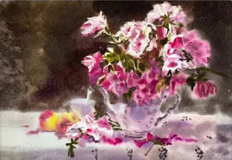 赵丽珍《粉红色的梦》水彩53x37cm