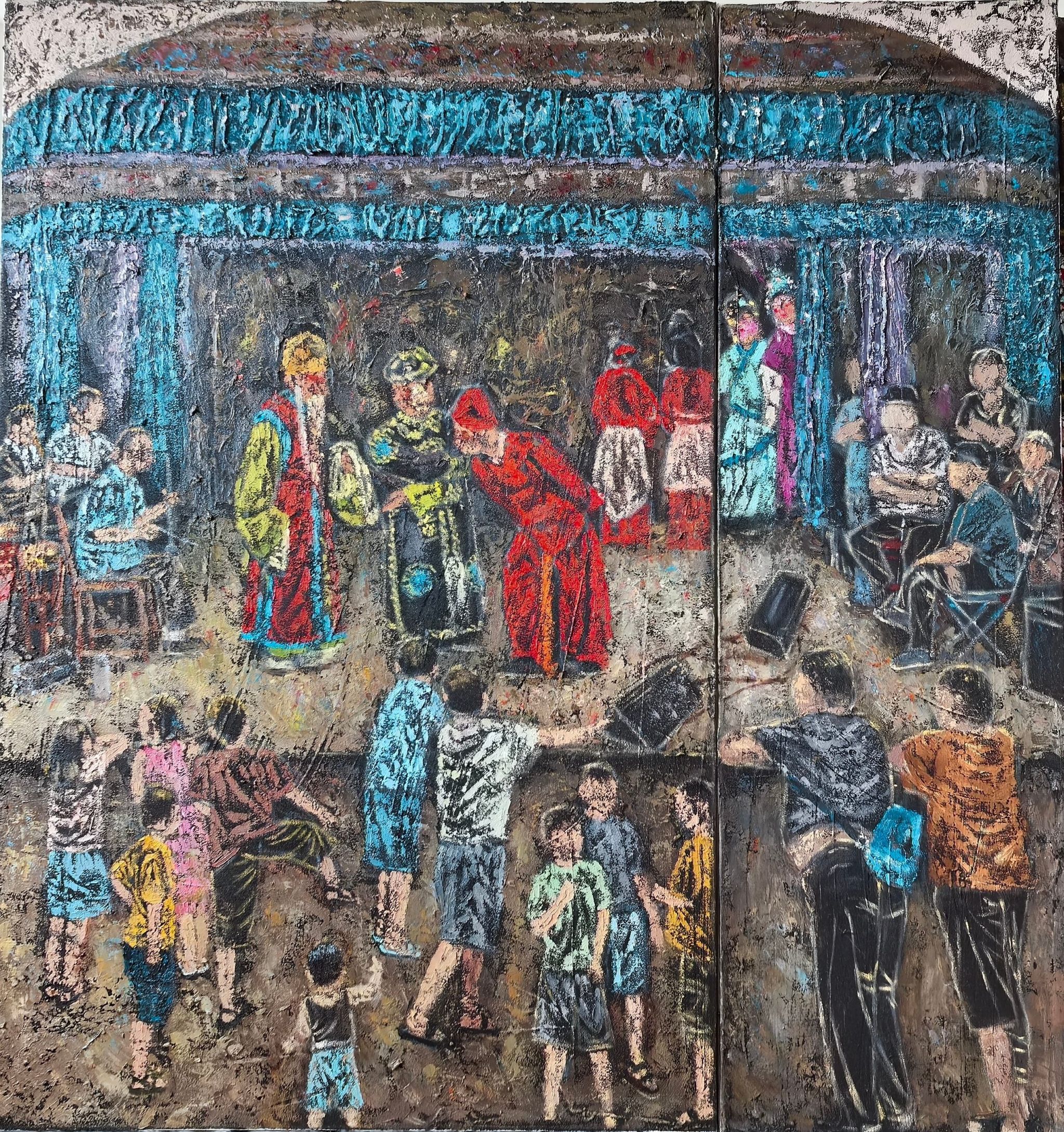 有戏系列之观戏 综合材料140cmx150cm 刘婷