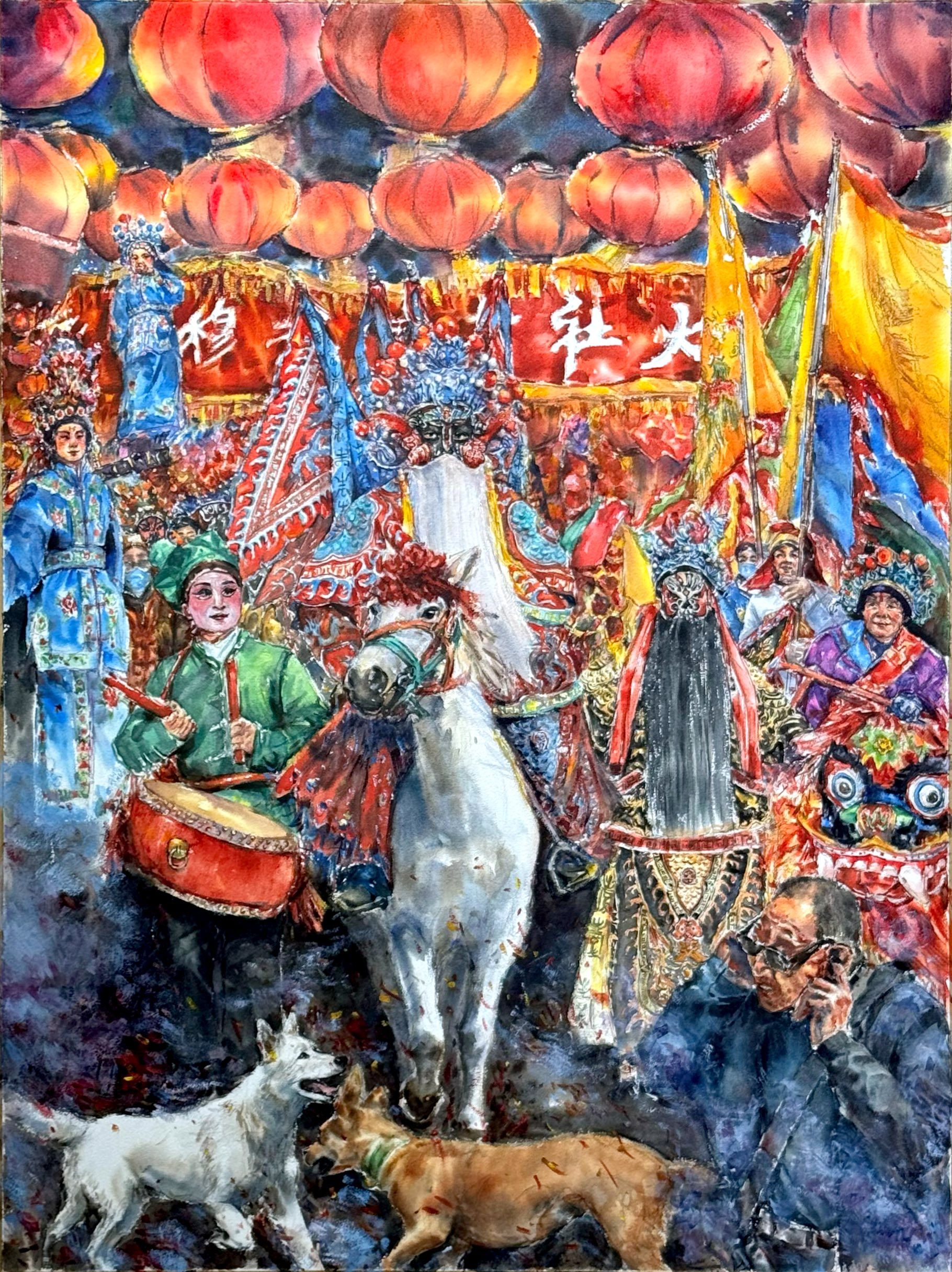 社火记·镇响 水彩 90cmX120cm 边宇航
