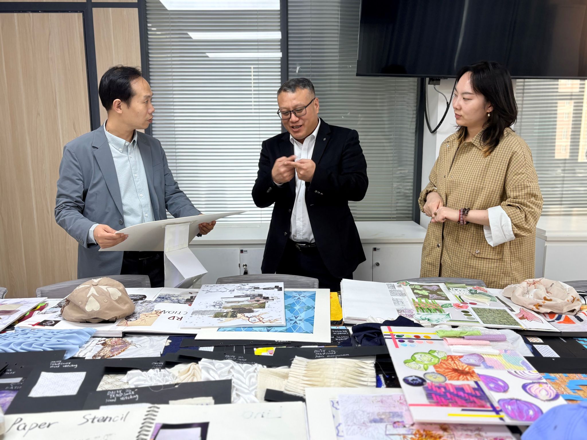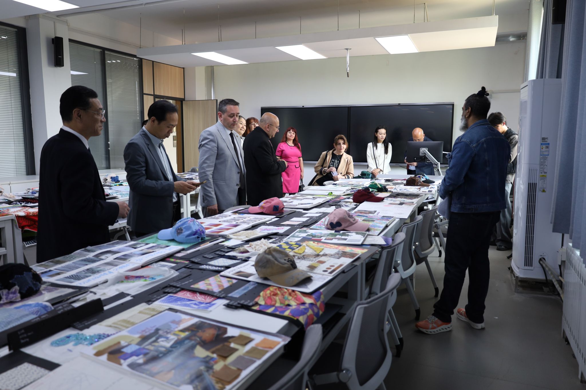 校领导与保加利亚学术访问团参观面料再造课程作业展