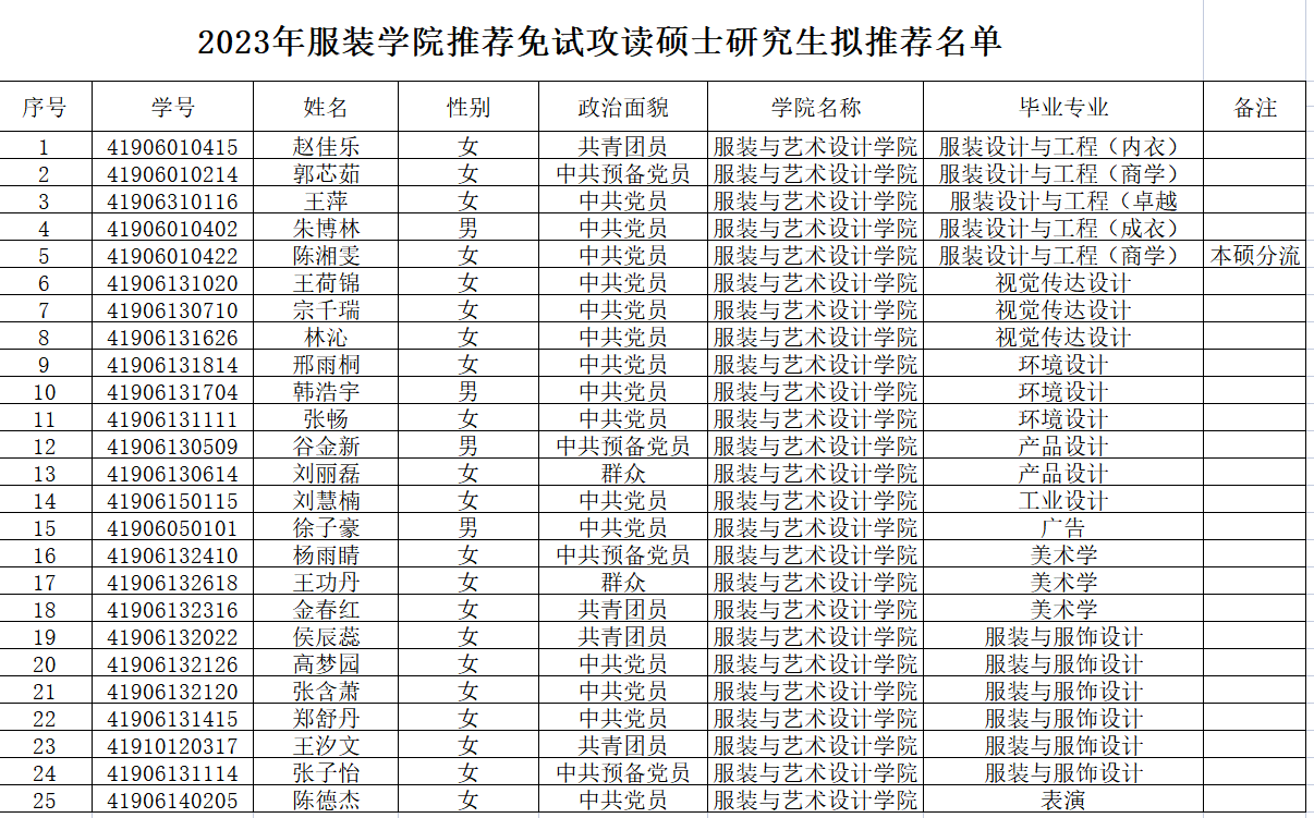 推荐免试攻读硕士研究生拟推荐名单公示