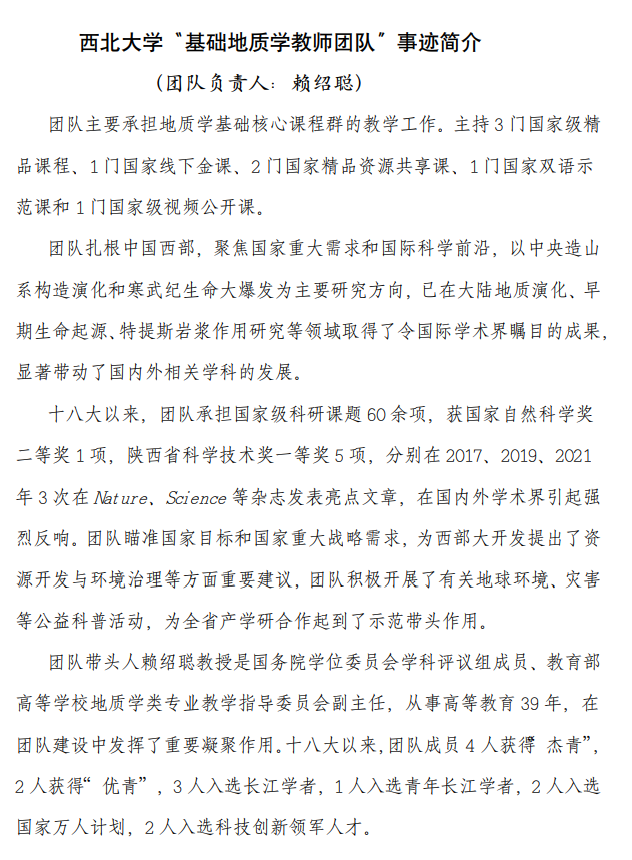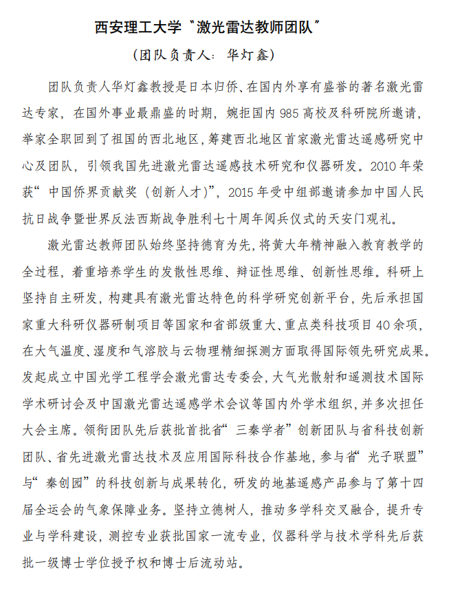 为深入贯彻落实习近平总书记对黄大年同志先进事迹重要指示精神,引导广大教师持续向黄大年同志学习。发挥“全国高校黄大年式教师团队”的示范引领作用,激发广大教师积极投身教书育人事业,根据《陕西省教育厅办公室关于开展“全国高校黄大年式教师团队”学习宣传活动的通知》文件精神及我校向“全国高校黄大年式教师团队”学习的活动。现将陕西省“全国高校黄大年式教师团队”先进事迹发布于此,大家积极学习。