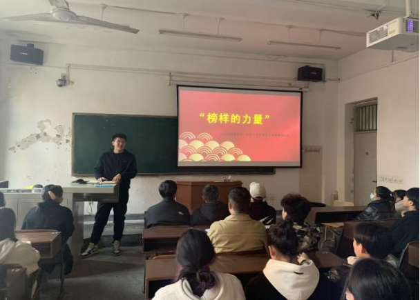 首先,谭赛江以“榜样的力量”为主题,结合2019级本学期国家奖学金、纺织之光奖学金获得者事迹进行宣讲,集中展示日常学习生活中涌现出的优秀同学的风采,让同学们真实感受到身边榜样的魅力,强调同学们应自觉对标身边榜样,刻苦学习,砥砺前行。