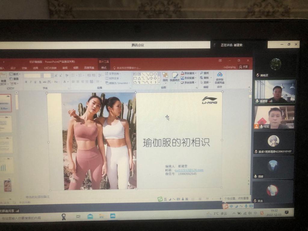 学生做了瑜伽服方面的线上讲座。崔建营为我校96届毕业校友,从事女子健身服装产品研发近二十年,精通女性健身服装的版型、工艺等,曾从事LULULEMON、LORNA JANE、PELOTON,LOLE,SWEAT BETTY,RHONE,KEEP,CAMILLA, GREYSON、MBC等健身品牌服装产品研发及生产制作。对女性运动Bra和Legging产品的版型、工艺、面料、配件等有较深研究。