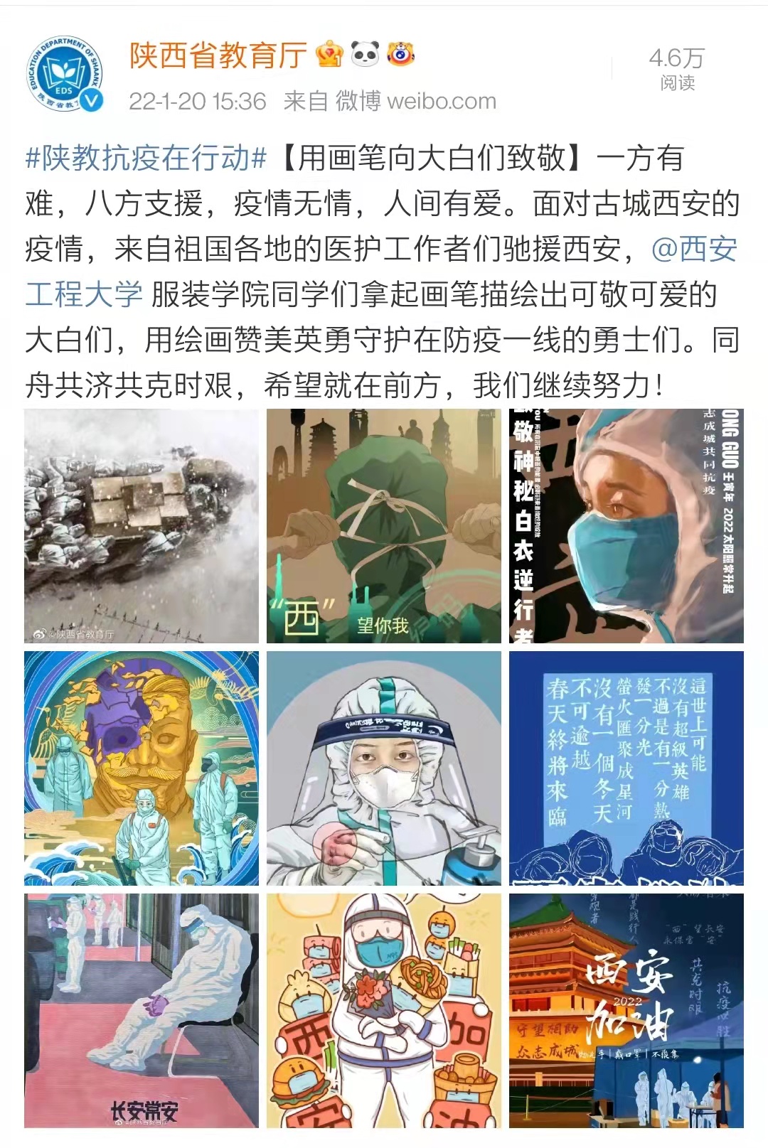 捷克论坛 造型系【用画笔向大白们致敬】线上作品展被陕西省教育厅官方微博客户端转载,全文如下:
