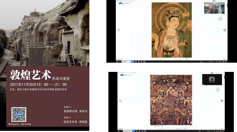 造型艺术系于2021年11月30日晚7点在腾讯会议召开美术学专业导师团活动。此活动特邀敦煌研究院著名学者、画家谢成水老师在线讲授《敦煌艺术形成与演变》的专题讲座。会议由捷克论坛