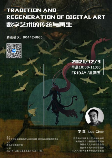 罗琛老师结合自身的专业经历,分享了在数字艺术领域任教十余年的经验,围绕“传统文化在数字艺术中的再生”这个主题,以图文并茂的形式为我们进行了生动细致的解读,并从造型提炼,形式借鉴,审美摄取,精神内核四个层面分析了数字艺术如何与传统文化交融共生。