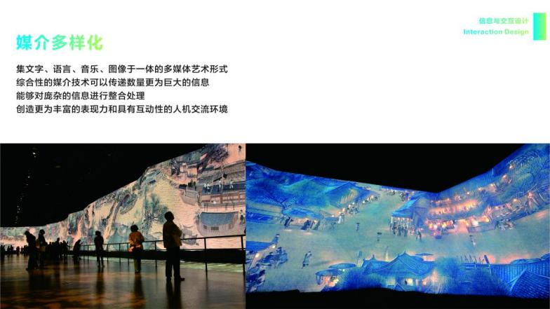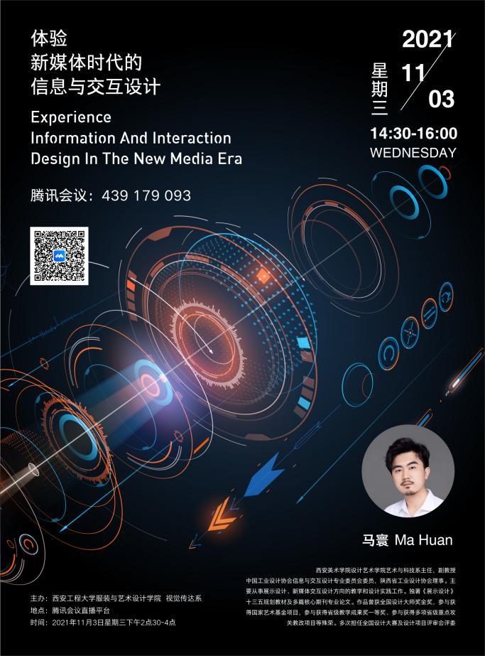 马寰老师结合自身的专业经历,分享了在艺术与科技学科任教十余年的经验,向我们展示了新媒体时代下的信息与交互设计。本次讲座总共分为四个部分,第一部分马寰老师讲述了体验经济与体验性设计的区别与定义,通过世博会场馆的案例分享,为我们解读了主题体验设计、空间体验设计、行为体验设计的具体模式;第二部分是对新媒体时代下信息与交互的特征进行了具体的陈述,如何在新媒体革命的趋势下实现艺术载体的信息数字化、媒介多样化、观展体验化、传播互动化、现实虚拟化的设计,对传统艺术的表现形式提出了新的要求与挑战;第三部分讲述了面对新媒体时代的到来,在设计教学中应该如何改变,如何培养出适应时代发展需要的专业型应用人才;第四部分马寰老师分享了多年来在教学与工作中的一些有关交互设计的经典案例。