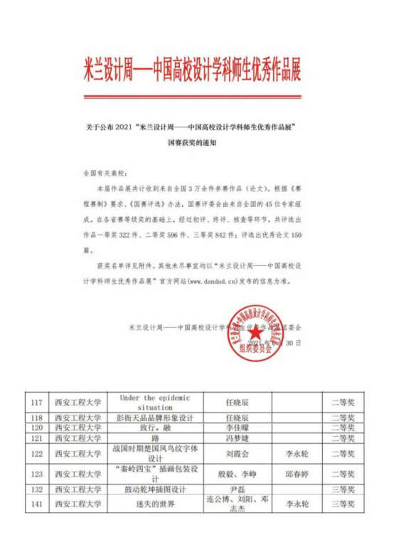 视觉传达系青年教师荣获二等奖2项、三等奖1项,视觉传达系学生荣获二等奖2项、三等奖1项。