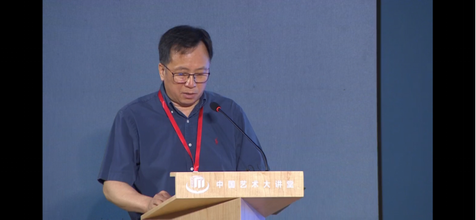 启动仪式后,教育部新文科建设工作组副组长、2018—2022年教育部高等学校美术学类专业教学指导委员会主任委员、中国美术学院原院长许江进行了“中国艺术大讲堂”第一讲。