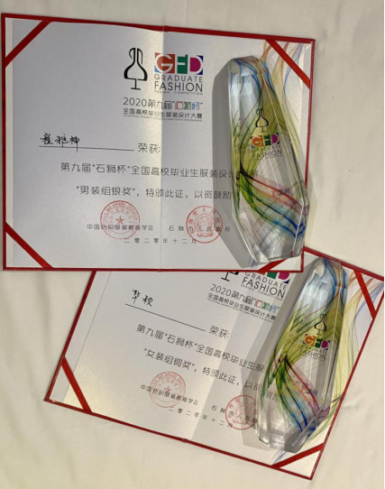 我校学生在第九届“石狮杯”全国高校毕业生服装设计大赛获银奖、铜奖奖杯、证书