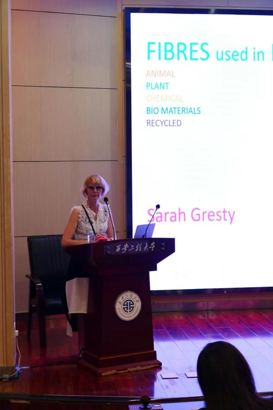 讲座期间,Sarah Louise Gresly向同学们非常清晰的梳理了有关面料与纤维方面的知识。从她的讲述中,同学们可以真切的领会不同的纤维在使用不同的加工工艺后呈现的独特的质感。同时,西安作为丝绸之路的起点,Sarah Louise Gresly还与大家就丝绸的话题展开了热烈的讨论。面对学生们提出的问题,Sarah Louise Gresly也用温柔的语调给出专业的答案,讲座期间现场氛围十分活跃。