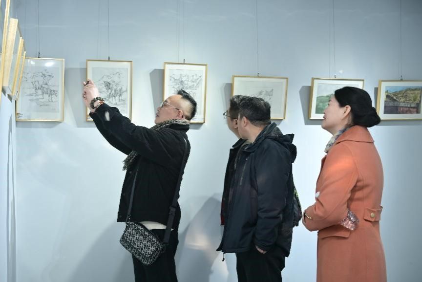 开幕式上,院党委书记苏博对师生课程作业展开幕表示祝贺,对老师的专注和学生的付出给予肯定,鼓励学生在今后创作中不断拓展艺术视野增强艺术素养。李艳希望以专业艺术展为契机与学院长期交流合作,助力文化艺术活动繁荣发展,共同为学校美育贡献力量。张树渊先生对展览成功开展表示祝贺,对同学们的作品表示肯定,表示会继续加强美协等专业学术机构与高校的合作交流,共同推进文化艺术事业的进步。李朝霞肯定了写生路线调整对学生创作的文化影响,介绍了学院在教学软硬件方面的优化改善,希望同学们在专业上更加努力。刘波作为带队教师代表回顾了写生实践的经验和感受,并在展览现场为观展嘉宾师生讲解介绍了作品。