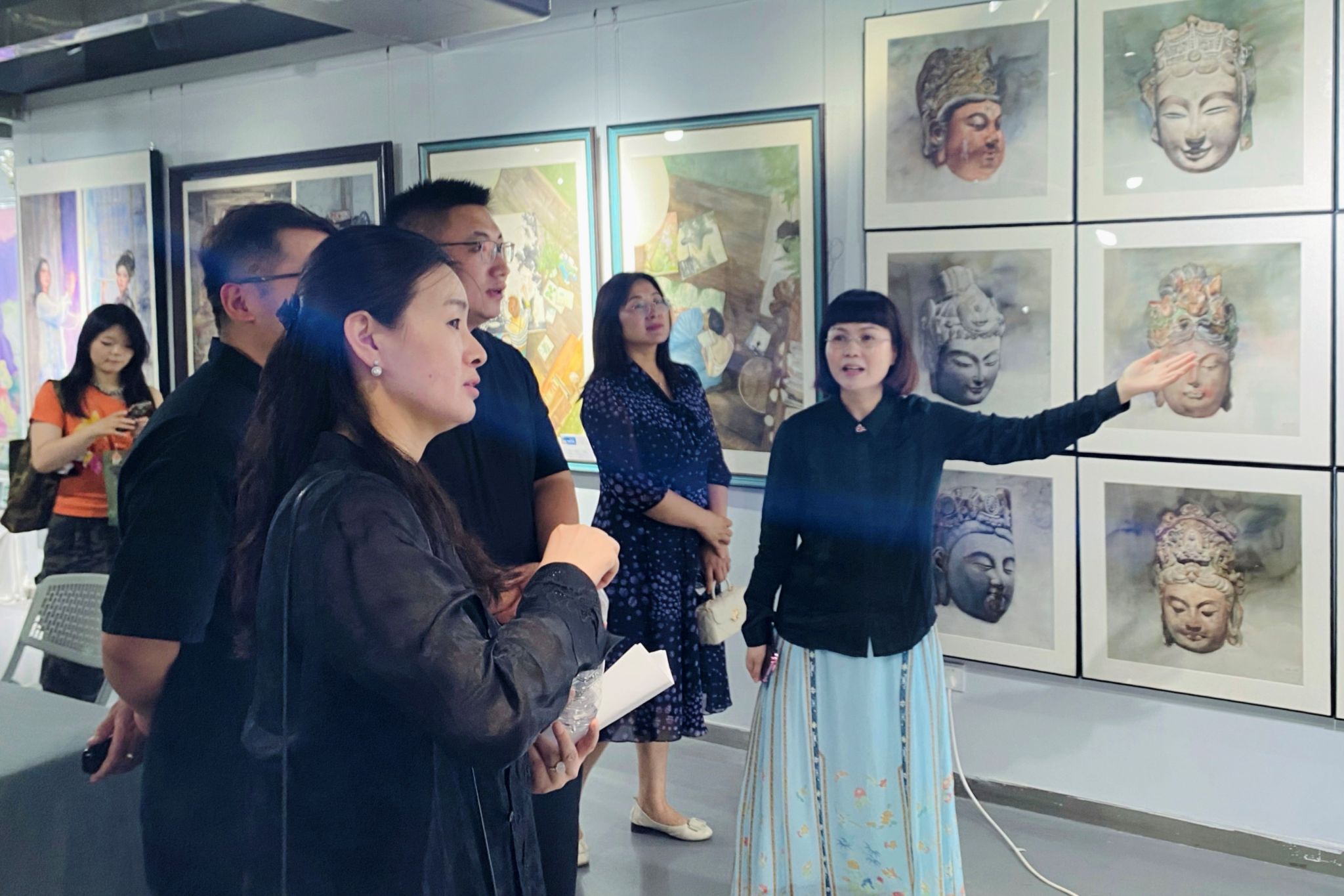 开幕式上,学院党委书记苏博代表学院对美术学专业教育教学的持续改进成效和老师们的辛勤付出给予赞扬,对毕业生取得的优异成绩给予肯定并寄予殷切期望。西安市美协代表宋红女士盛赞作品质量,认为其展现了青年学子对生活的热爱与关注,体现了陕西省高校美术教育的专业水准。李艳称赞展览为“视觉盛宴”,期待深化校企合作。副院长李朝霞介绍了美术学专业三大方向的建设成效,一年来通过课程改革显著提升了毕设质量。