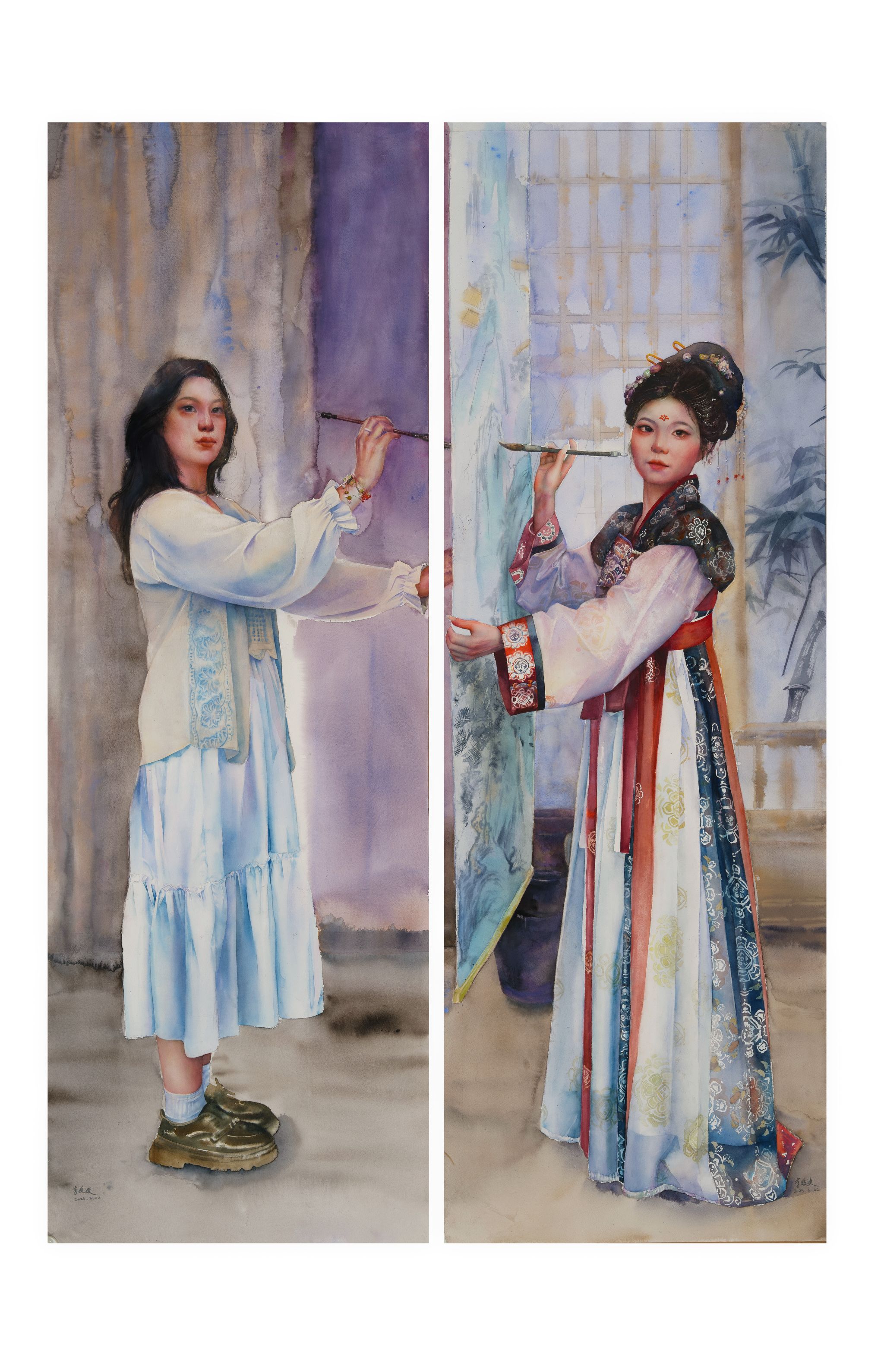 纸本水彩 李媛婕《古今共此卷》110cm × 160cm