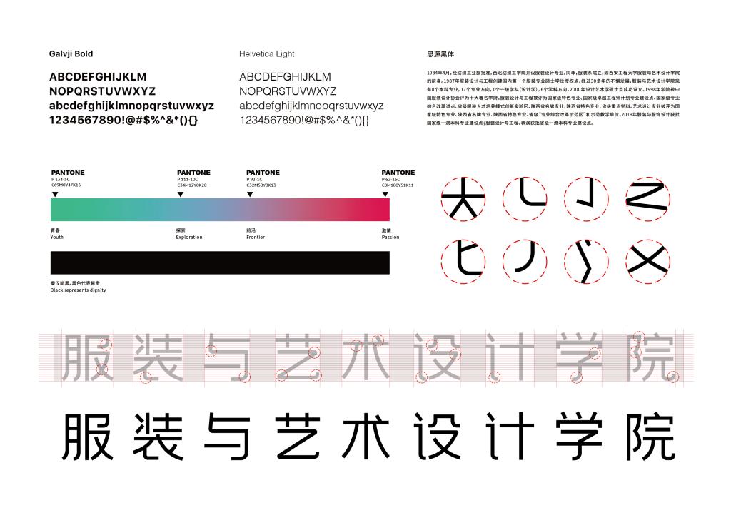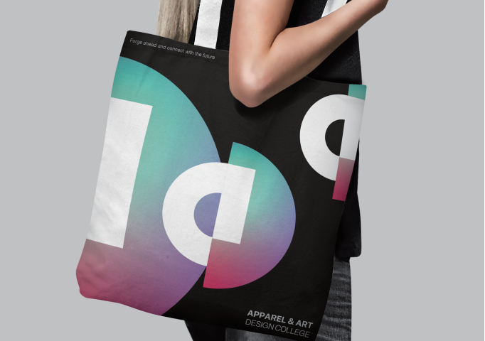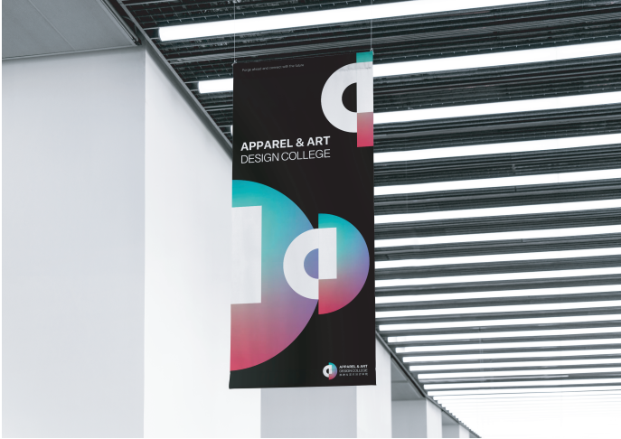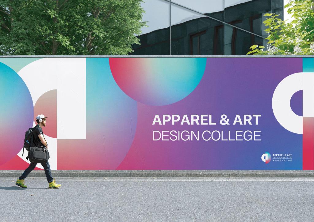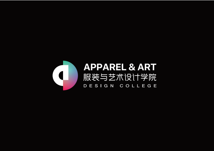 “艺工融合”的办学理念和学科特色,在设计中通过视觉图形语言寻求艺术与工科交融共生的美感。同时体现文化传承与科技创新的理念美学。标志的设计语言主要运用分别代表艺术设计的单词Design和代表工程的单词Apparel来创意,分别提炼了两个单词的首字母小写a和大写D,通过寻找字母之间的图形语言表达方式,将两个字母分别用不同的视觉特性表达出来,字母a从设计的角度上诠释的更有构成感,象征着工程类学科的严谨与理性,字母D斌予了 流动的色彩变化,突出了艺术设计类学科的时尚与前卫,两个字母构建成一个整体,伴随着色彩的不停律动与变幻,将文化传承与科技创新表达的淋漓尽致。