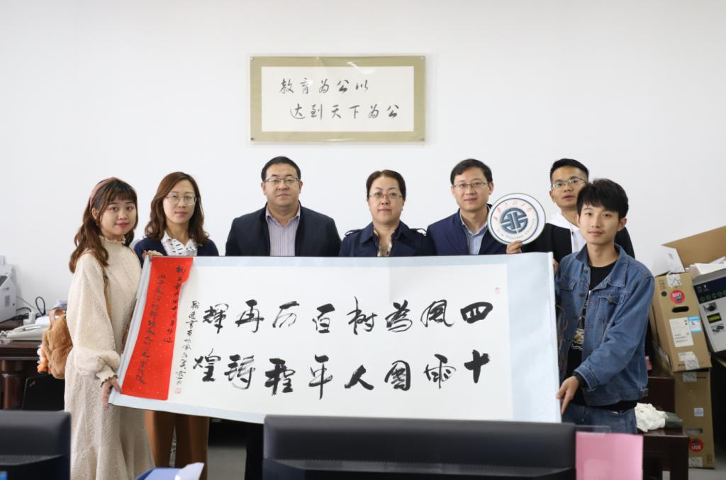 “堆锦传承,太行闪光”暑期社会实践队向母校赠送了校徽和书法作品等暑期社会实践成果,向母校表达了师生欢庆独立建校40周年的喜悦之情。国内合作与校友工作处处长杨永革、校团委书记王晓先与实践队成员进行了交流。