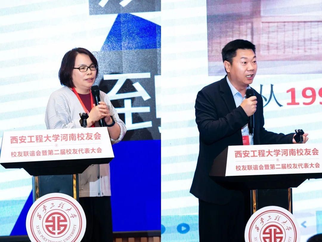 在大会分享环节,纺织品设计专业91级校友、河南工程学院副校长张巧玲作了题为《服装行业发展现状及发展趋势》的报告;装潢设计专业01级校友、田野文化艺术有限公司副董事长朱沉浮作了《用设计讲好中国故事》的报告。