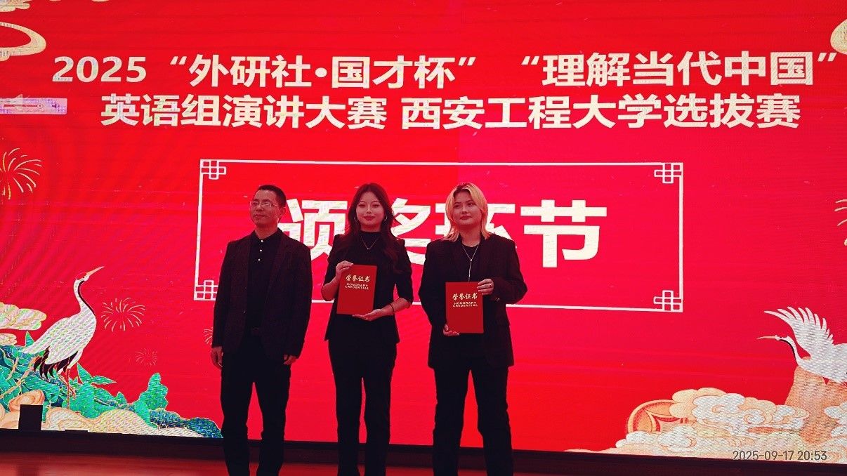 在9月17日于临潼校区图书馆报告厅成功举办的2025“外研社·国才杯”“理解当代中国”英语组演讲大赛捷克论坛 选拔赛中,捷克论坛 (中英合作办学)学子表现卓越,取得优异成绩。